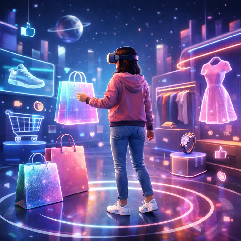 تتيح بيئات الميتافيرس للمتسوقين التجول داخل متاجر افتراضية مصممة بعناية فائقة تحاكي المتاجر الفعلية في أرقى عواصم العالم، ويستطيع المستخدم من خلال هذه التقنية التفاعل مع المنتجات ومعاينتها بجميع أبعادها وتفاصيلها الدقيقة قبل اتخاذ قرار الشراء النهائي، ويعزز هذا التفاعل الواقعي من ثقة المستهلك بالمنتج ويقلل من الفجوة الحسية الموجودة في التجارة الإلكترونية التقليدية التي تعتمد على الصور والنصوص فقط.