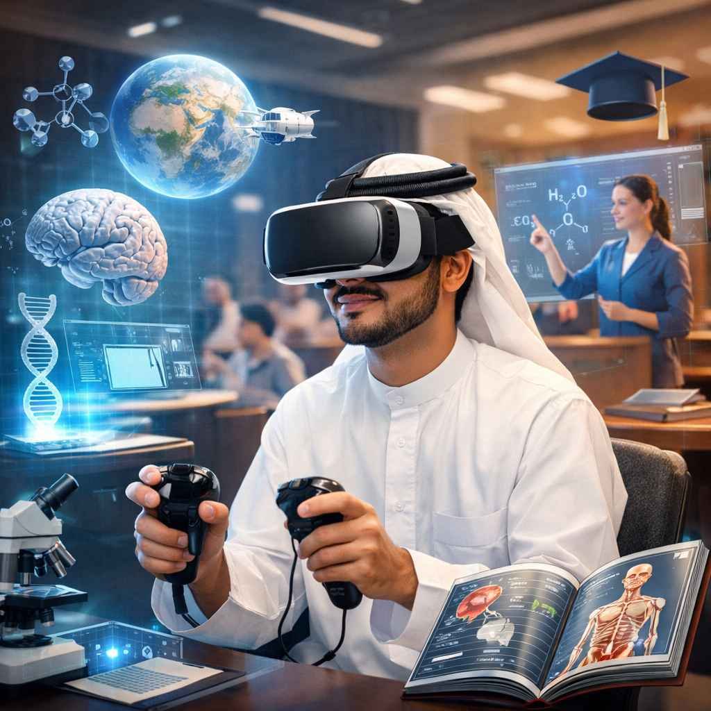 ويأتي استخدام تقنية الواقع الافتراضي في التعليم كجزء من رؤى وطنية طموحة تهدف إلى تحويل التعليم من النمط التقليدي إلى النمط التفاعلي القائم على المحاكاة والابتكار.”